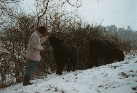 Im Dezember 1992 holten wir die ersten Galloways nach Wiesenfeld. In den darauf folgenden Jahren wurde der Bestand zunehmend größer, so dass wir heute im Schnitt ca. 60 Tiere halten. Die Herde setzt sich zusammen aus 18 Mutterkühen, im Moment zwei Zuchtbullen und der Nachzucht. Bei unseren Tieren handelt es sich um Herdbuchtiere, deren Herkunft eindeutig ist und deren Vorfahren über Generationen bekannt sind.